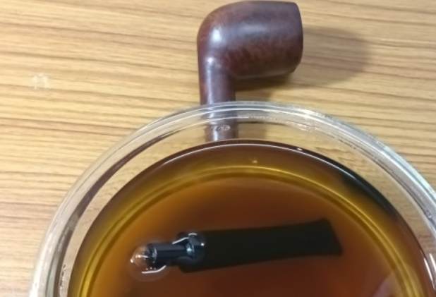 I dunked the stem into the deoxidizer solution overnight for the oxidation to be pulled out to the surface. I generally allow the stem to soak in the deoxidizer solution overnight.