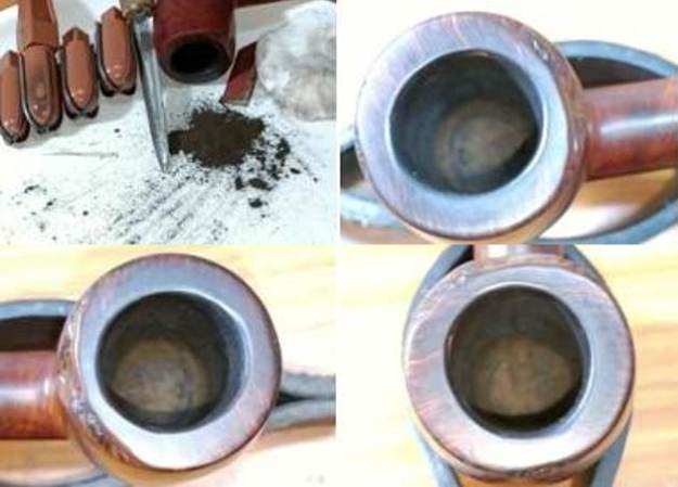 While the stem was sat aside in the deoxidizer solution, I moved ahead to deal with the stummel repairs. I started with reaming the chamber with a size 1 head of the PipNet reamer and progressed to size 2 head. Using my fabricated knife, I gently scrapped away the cake which could not be reached by the reamer head. I further cleaned the chamber with a folded piece of 180 grits sand paper to sand out the remaining traces of cake and expose the walls of the chamber to ascertain that there were no cracks/ heat fissures. I wiped the chamber with a cotton pad dipped in isopropyl alcohol to remove the carbon dust left behind by all the reaming and sanding process. This also reduced traces of old smells from previous usage. The walls of the chamber were solid with no damage.