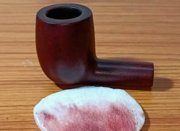 While refreshing my readings about Dunhill lines, I remember having read that Dunhill achieved the trademark Bruyere color by having an undercoat of dark brown stain followed by deep red color stain. And that’s exactly what I decided to follow with a slight modification. I would first stain wash the stummel with DB stain and thereafter stain it deep red.