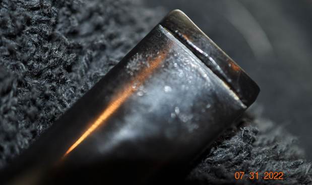 I took some close up photos of the rim top and the stem surface. I wanted to show the cleaned bowl and rim top. The rim top and the inner and outer edges of the bowl were in excellent condition. The beveled rim top of the bowl and edges looked very good. I also took close up photos of the stem to show the tooth marks on the stem surface.