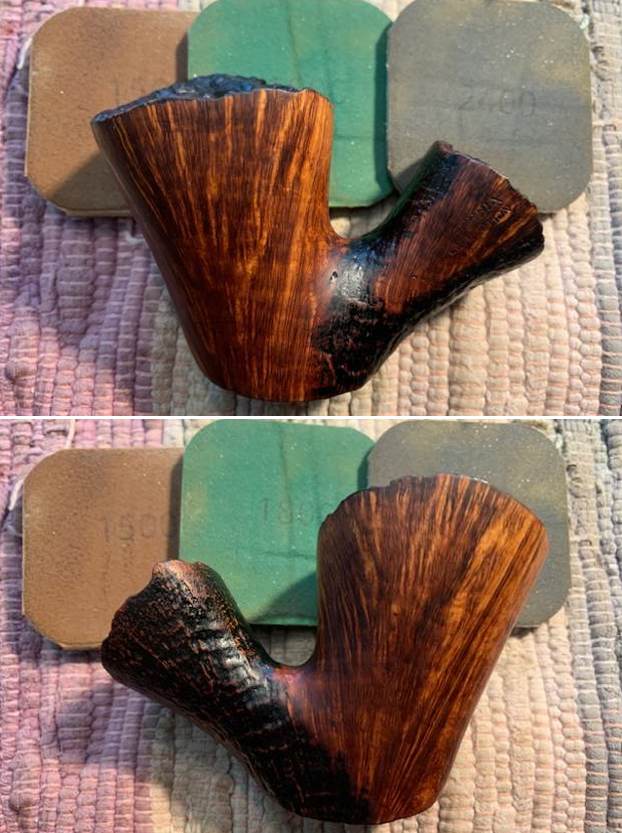 I polished the bowl with micromesh sanding pads – wet sanding with 1500-12000 grit pads. I wiped the briar down after each pad with a damp cloth. The bowl is starting to look very good.