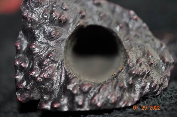 Jeff took photos of the sandblast finish around the bowl sides to show the deep and flowing rustication around the bowl. You can also see the dust and debris in the grooves of he blast.