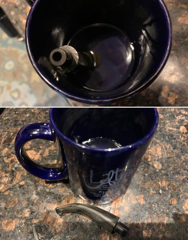 I used a coffee mug with water to heat the stem end and bend it. I put the stem and the mug in the microwave and heated it for 2 minutes until it was boiling. I let the stem sit for a few moments then removed it from the water and bent it to the angle I wanted. I set the angle with cold water. I dried it off and set it aside to work on further.