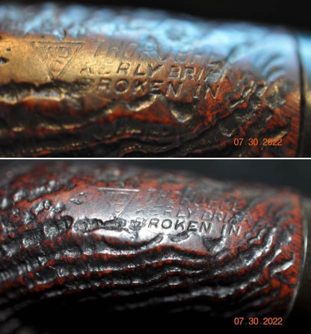 I also have included a photo of a Billiard with the same stamping and deep sandblast as the pipe I working on.