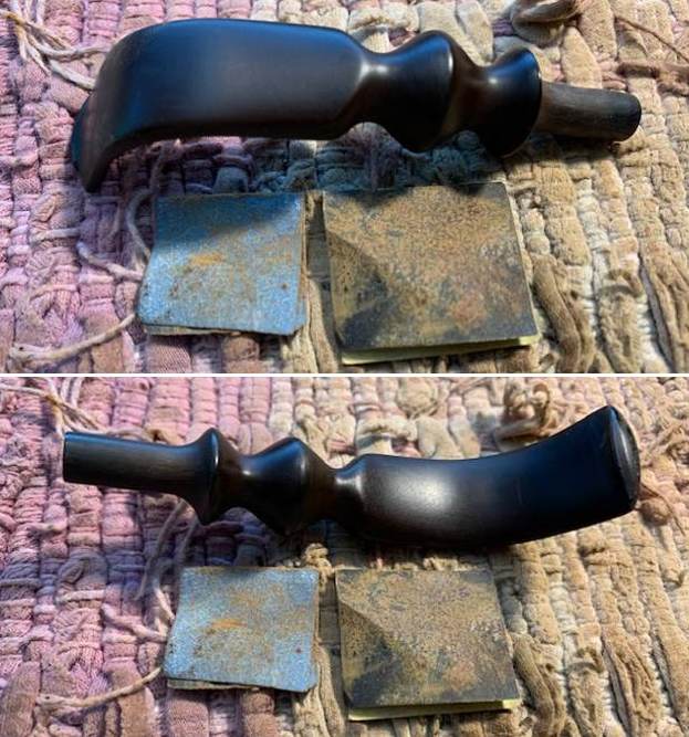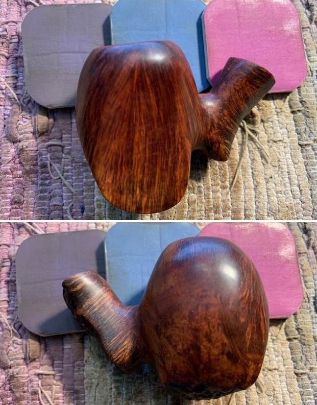 I polished the Lucite stem with micromesh sanding pads – wet sanding with 1500-2400 grit sanding pads and dry sanding it with 3200-12000 grit sanding pads. I wiped it down after each sanding pad with a damp cloth. I polished it with Before & After Pipe Stem Polish and wiped it down a last time with the damp cloth.
