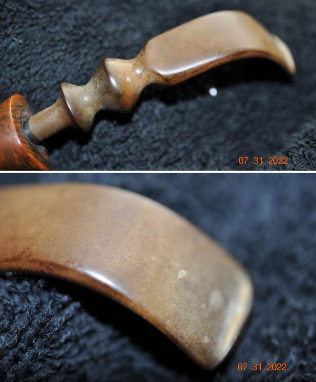 The next photos show the stamping on the underside of the shank and the top of the saddle stem. It is quite clear and legible. The top of the stylized saddle stem has a Crown MV stamped into the surface. It appears to have originally been gold.
