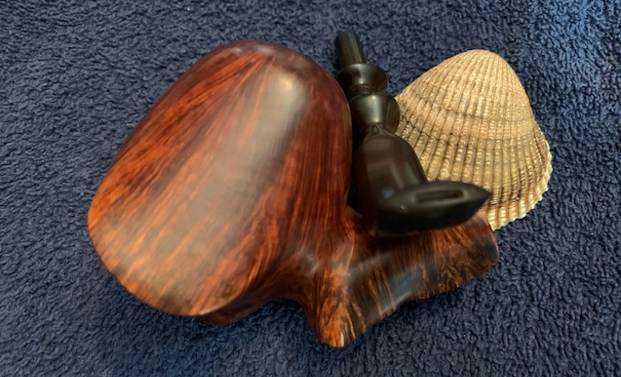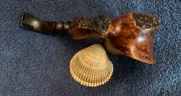 This beautiful, double rusticated Preben Holm carved Monte Verde Twin Finish Large Freehand is a special looking pipe and it feels amazing in the hand. I polished stem with Blue Diamond polish on the buffing wheel. I gave the bowl multiple coats of Conservator’s Wax and the stem multiple coats of carnauba wax. I buffed the pipe with a clean buffing pad to raise the shine. I hand buffed it with a microfiber cloth to deepen the shine. The pipe polished up pretty nicely. The multi-coloured grain shining through the rustication came alive with the buffing. The rich contrasting brown colour works well with the polished swirling brown, tan, black and white Lucite stem. The finished pipe is a beauty and feels great in the hand. Have a look at it with the photos below. The dimensions are Length: 6 ½ inches, Height: 3 inches, Outside diameter of the bowl: 2 inches, Chamber diameter: 1 inch. The weight of the pipe is 2.75 ounces/ 78 grams. I will be putting this Monte Verde by Preben Holm on the Danish Pipe Making Section on the rebornpipes online store soon. It is such an interesting tactile pipe and if you have been looking for a freehand then this might be the one for you. Thanks for walking through the restoration with me on this interestingly shaped Preben Holm Hand made pipe.