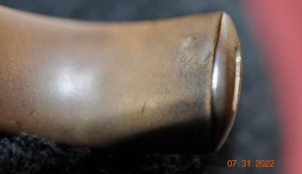 I also took a photo of the stamping on the underside of the shank. The stamping is very clear and readable. You can also see the scratches in the smooth finish of the area in the photo below.
