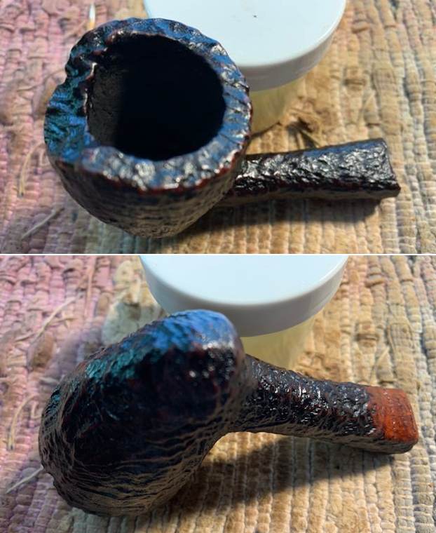 He took photos of the sides and heel of the bowl to show a deep and rugged sandblast that really makes the mix of grain stand out through the grime on the shank and the sides of the bowl. The geometric angles of the bowl shape are really quite stunning and interesting.