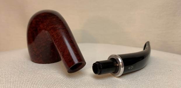 He took a photo of the stamping on the smooth panel on the topside of the shank. The stamping was readable as you can see from the photos and read as noted above. He also captured the logo brass insert on the top of the stem.