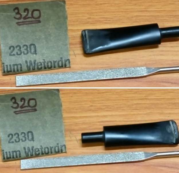 At this same stage, I also sanded and evened out the fills over the crack with a flat needle file and further matched it by sanding it with a piece of 220 grit sandpaper. Unfortunately, I missed out on taking pictures of this process.