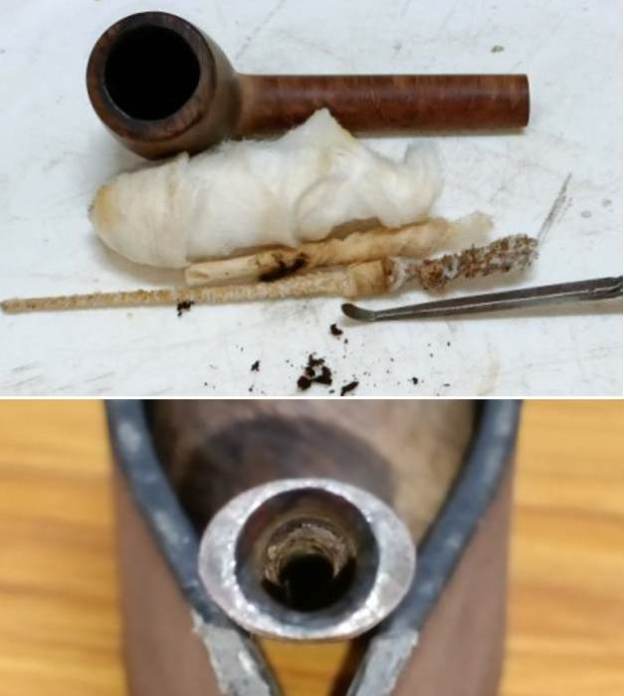 By next afternoon, the cotton and alcohol had drawn out all the remaining oils/ tars from the chamber and mortise and loosened out any residual cake and tar build up, fulfilling its intended task. I removed the cotton balls and ran pipe cleaners through the mortise to clean out all the loosened tars and gunk. Using my fabricated tool, I scraped out the entire loosed gunk from the mortise and further cleaned it with alcohol and q-tips.