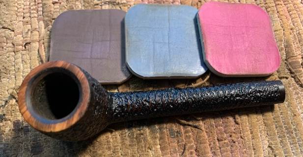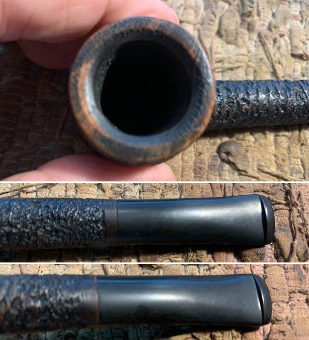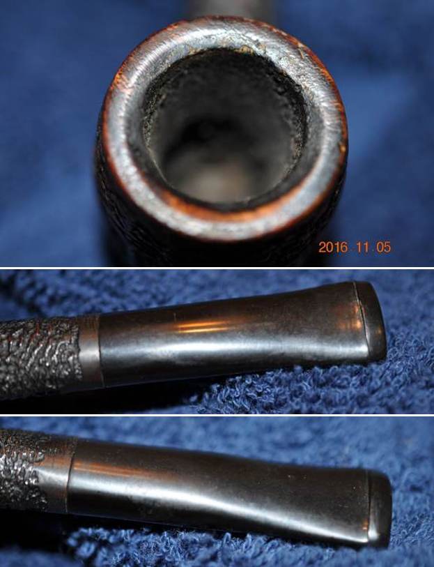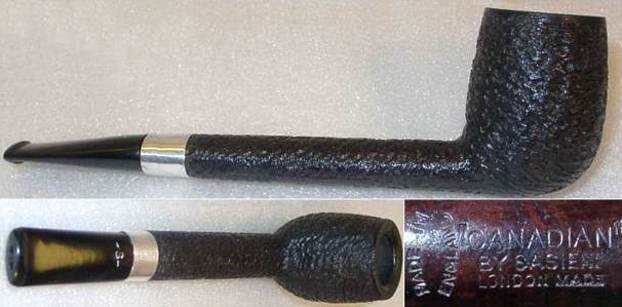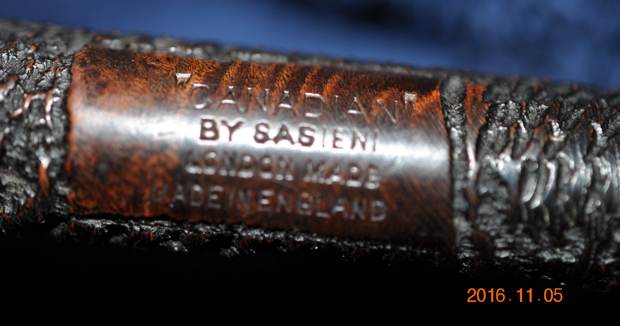 The next pipe I chose to work on has the characteristic rustication that I have seen on quite a few of the Sasieni Rusticated pipes that I have worked on. It is a long shank Canadian with hatch marked rim top and beveled inner edge. Jeff bought the pipe at an antique store on 10/29/2016 in Boise, Idaho, USA. It is stamped “Canadian” [over] By Sasieni [over] London Made [over] Made in England. The rustication on the bowl and shank was rugged with a tight pattern. The briar was stained with dark brown and black stains that provided depth to the finish. The finish on the pipe is dirty with a lot of dust and grime in the grooves of the rustication. There was a thick cake in the bowl and lava overflowing on to the rim top. The rim top is hatch marked and the inner edge is smooth. The outer edge of the rim has some wear from being knocked against a hard surface. There is a smooth ring around the end of the shank. The stem looked dirty but otherwise there were no tooth marks or chatter on the surface on either side. It was in good condition. Overall the pipe looked good. Jeff took photos of the pipe before he started his clean up work on it. Jeff took photos of the bowl and rim top and the stem to give a sense of the condition they were in. You can see the cake in the bowl and lava on the rim top as well as the hatch marks scratched into the rim top in the first photo. The stem photos show a relatively clean stem. He took photos of the bowl sides and heel to give a sense of the rustication around the bowl. To me it is a classic Sasieni style rustication. He took a photo of the stamping to show how clear and readable it is. It reads as noted above.I turned to Pipephil’s site to see if there was any specific information on “Canadian” By Sasieni (http://pipephil.eu/logos/en/logo-sasieni2.html). There was a listing there under the section on Sasieni seconds that matched the pipe I was working on. The pipe I have on the table is a lot like the second pipe in the screen capture below. The finish is the same though the stamping is slightly different and the stem does not have the –S- logo stamp on the top of the taper. I also captured the additional photos of the second pipe to show the finish and shape of the pipe. I then turned to Pipedia (https://pipedia.org/wiki/Sasieni#Sasieni_Seconds) and clicked on a list of seconds that had been provided by Doug Valitchka. The “Canadian” line is in the list at the bottom of the second column below. I have marked it in red for ease of reference on the chart below.Now it was time to work on the pipe. It is really a beautiful piece. Jeff had done a great cleanup on the pipe. He reamed the bowl with a PipNet pipe reamer and followed up with a Savinelli Fitsall pipe knife to remove the cake. He scrubbed out the mortise and the airway in the shank and the stem with alcohol, cotton swabs and pipe cleaners. He scrubbed the bowl exterior with a tooth brush and Murphy’s Oil Soap to remove the grime on the finish of the bowl and the lava from the rim top. He rinsed it under running water. One of the benefits of this scrub is that it also tends to lift some of the scratches and nicks in the surface of the briar. He dried it off with a soft cloth. He cleaned the internals and externals of the stem with alcohol, pipe cleaners and cotton swabs. He soaked the stem in Briarville’s Pipe Stem Deoxidizer and rinsed it off with warm water and cleaned out the airway in the stem with alcohol, pipe cleaners and cotton swabs. I took photos of the pipe as I saw it when I put it on the table. I took photos of the rim top and stem to show the condition. The rim top and edge looked much better. You can see the darkening on the beveled inner edge of the bowl and the hatching marks on the top of parts of the rim top. It seems to me that those marks are not original to the pipe when it was made. The stem looked very good and was smooth on both sides. There were scratches on both sides but no tooth marks or chatter.   The stamping on underside of the shank on the smooth panel is clear and readable as noted above. I really like the rugged Sasieni style rustication on the bowl and shank. The pipe is a beauty and the long shank fascinating to me. I removed the stem from the shank and took a photo of the pipe to give a sense of the proportions of the bowl and stem.I started my work on the pipe by dealing with the darkening on the beveled inner edge of the rim and the hatch marks on the rim top. I used a folded piece of 220 grit sandpaper to clean up the bevel and then stained it with a black Sharpie pen to blend it into the rest of the bowl walls. I then used the sandpaper to further flatten out the rim top. It definitely looks much better. I polished the rim top with micromesh sanding pads – dry sanding with 1500-12000 grit sanding pads. I wiped it down after each pad with a damp cloth to remove the sanding dust and debris. I restained the rim top with a combination of Walnut and Cherry stain pens to match the stained panel on the underside of the shank and the variations in colour on the rustication. Once it is buffed it will look very good.I rubbed the bowl and shank down with Before & After Restoration Balm. I worked it into the surface of the bowl sides and shank with my fingertips and a horsehair shoe brush to clean, enliven and protect the briar. I let the balm sit for 10 minutes, then buffed with a cotton cloth to raise the shine. The Balm did its magic and the rustication took on depth. It really looks good.  I set the bowl aside and worked on the stem. It was in great condition so I polished it with 1500-12000 grit micromesh sanding pads. I wiped it down with Obsidian Oil after each sanding pad. I finished the polishing with Before & After Polishes – both Fine and Extra Fine. I gave it a final rub down with Obsidian Oil and set it aside to dry.   This “Canadian” By Sasieni London Made with a vulcanite taper stem has a classic Sasieni rusticated finish th