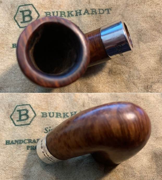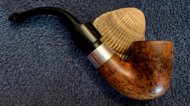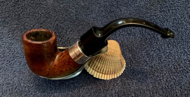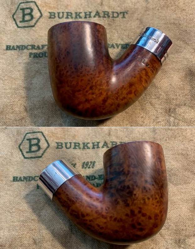 As usual at this point in the restoration process I am excited to be on the homestretch. I look forward to the final look when it is put back together, polished and waxed. I put the bowl and stem back together. I polished the bowl and stem with Blue Diamond to polish out the scratches in the briar and the vulcanite. I gave the bowl and the stem multiple coats of carnauba wax. I buffed the pipe with a clean buffing pad to raise the shine. I hand buffed it with a microfiber cloth to deepen the shine. The pipe polished up pretty nicely. The grain really pops with the wax and polish. The shiny black vulcanite stem is a beautiful contrast to the browns of the bowl and thick shank. This Peterson’s DeLuxe 8S Bent Billiard was another fun pipe to work on. The Sterling Silver Ferrule works as a contrast between the stem and the briar and binds it all together. It really is a quite stunning piece of briar whose shape follows the flow of the briar. The pipe is comfortable pipe to hold in the hand. The finished pipe is shown in the photos below. The dimensions of the pipe are Length: 5 ½ inches, Height: 1 ¾ inches, Outside diameter of the bowl: 1 1/8 inches, Chamber diameter: ¾ of an inch. The weight of the pipe is 1.52 ounces/44 grams. This beautiful pipe will be going back with the Savinelli De Luxe Milano to my friend. He will enjoy smoking it once again in his new place. Thanks for reading this blog and my reflections on the pipe while I worked on it.