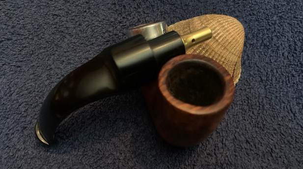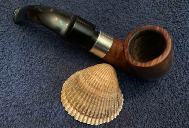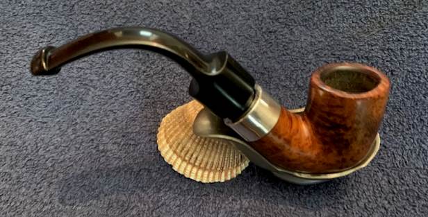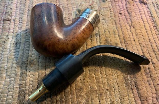 I removed the stem from the bowl and took a picture of the pipe to show the general look and proportion of the pipe. It also shows the metal condenser tube in the tenon end.