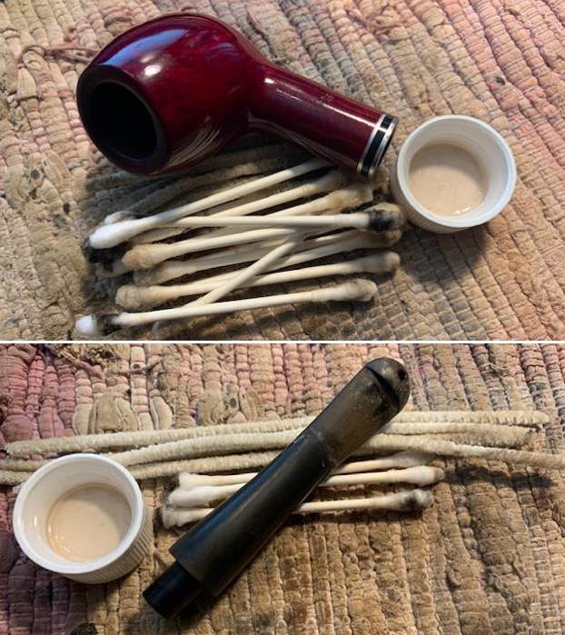 I cleaned the internals of the mortise, shank and stem with alcohol, cotton swabs and pipe cleaners to remove the grime. Once it was clean I was able to fit the stem in the shank.
