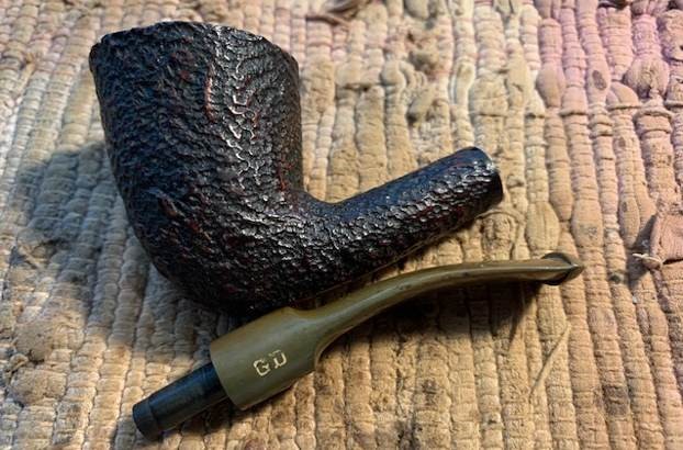 This week I received an email from the fellow I had restored the pair of Vauen pipes for. He was sending me a package with a pipe to work on that he wanted restored. It was an old Gulden Dansk pipe made by Savinelli with a vulcanite stem. He wanted me to restore it. It was a rusticated finish with a tight pattern around the bowl. The finish was dirty with dust in the grooves but it was still quite pretty. The rim top was rusticated to match the bowl finish. The rim top was dirty on the right side of the bowl and there was some dust in the finish. The pipe was stamped on the underside of the shank and read Gulden Dansk followed by the shape number 9200. It was quite lightweight and would clean up quite nicely. In chatting with him over email that he wanted the original stem cleaned up and restored. The stem was oxidized and the GD stamp was faded but the stamping looked to be deep enough for a repair. I am including the photos that the pipeman who sent it to me took of it. It is an intriguing looking pipe.