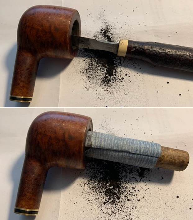 I cleaned out the mortise and airway in the shank with cotton swabs, pipe cleaners and isopropyl alcohol until they came out clean. (I would work on the airway in the stem when I removed it from the soak.)