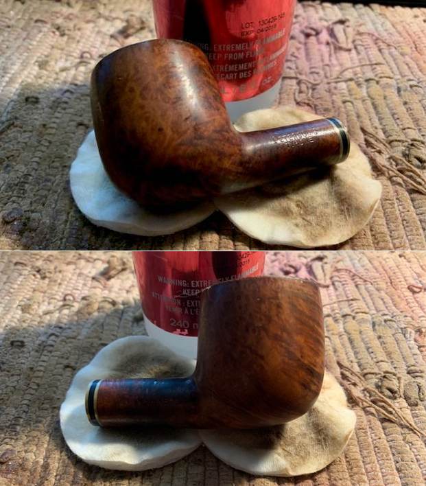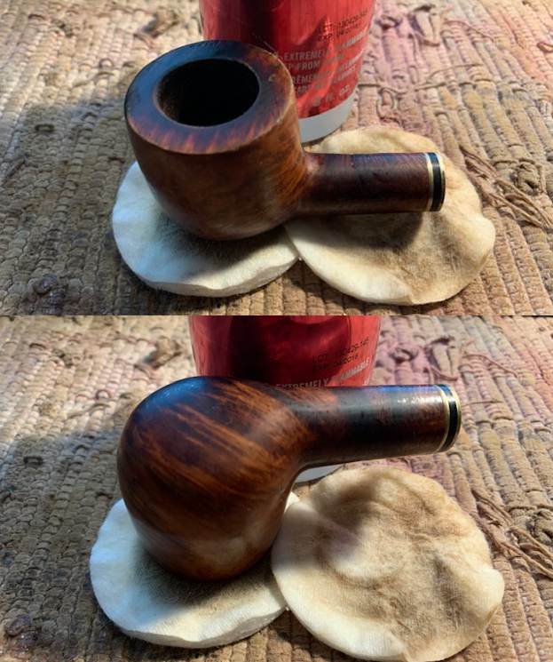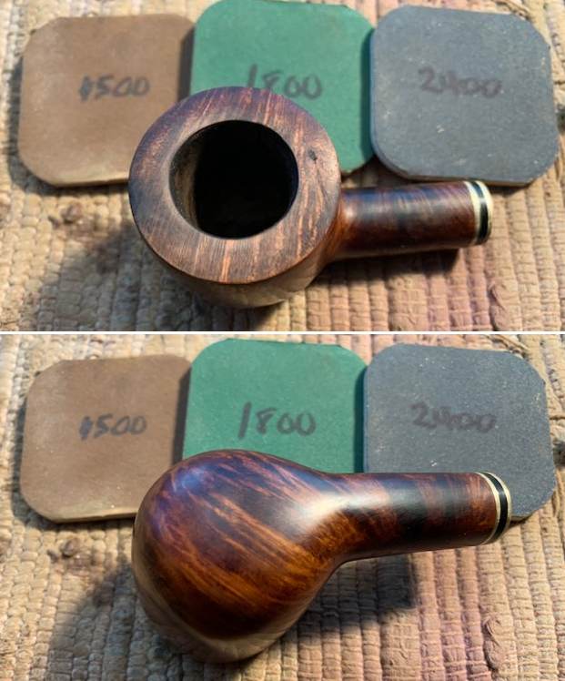 I restained the sanded rim top with a Walnut stain pen to match the bowl sides and shank.