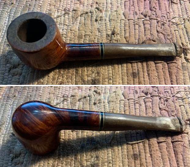 I removed the stem and took a photo of the pipe to have a look at the parts and overall look. The tenon on the stem was made for a 9mm filter and actually looked quite good.