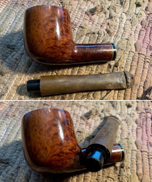 I took photos of the stamping on the sides of the shank and on the “P” logo on the left side of the stem. It is readable as noted above.