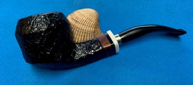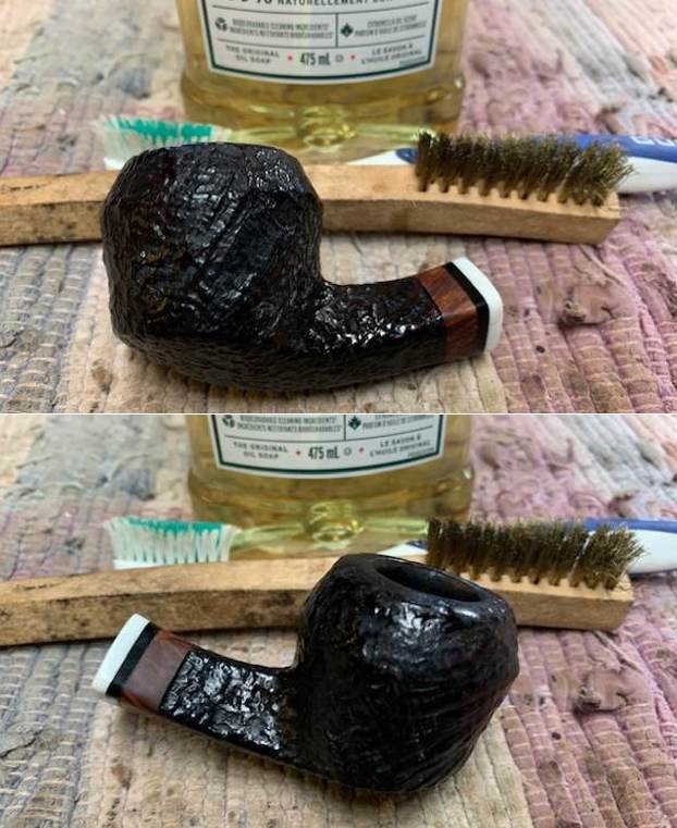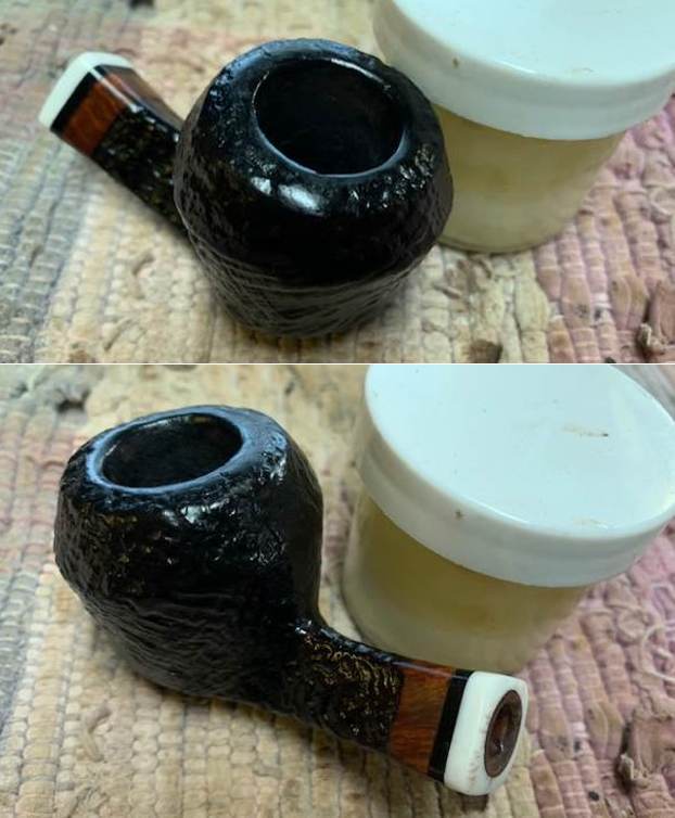 I touched up the nicks and marks on the sandblast bowl and rim top with a black stain pen to blend them into the rest of the bowl.