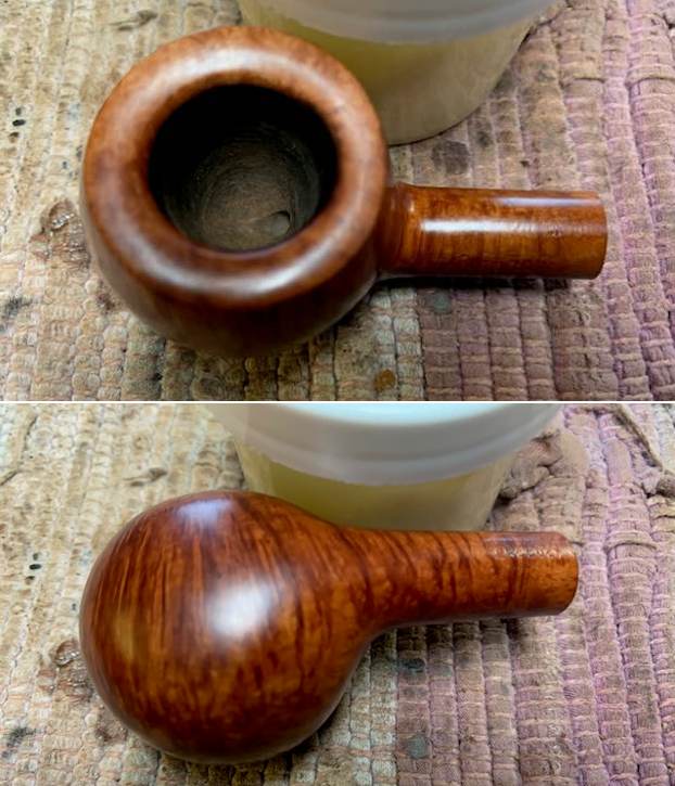This is another pipe that I have taken out of my personal collection as I just do not use enough to warrant keeping it. This pipe was one that I kept from a group of pipes Jeff and I purchased a few years ago. It was not used very often and I believe it is one that I actually found unsmoked or lightly smoked when I picked it up. It smells of faint Virginia tobaccos so there is no real ghost in the pipe. The airway in the shank and the mortise were quite clean. The smooth finish and rim top were in good condition. There was some darkening on the inner edge of the bowl on the backside. The stamping on the pipe is very simple on the left side of the shank it is stamped Oscar [over] LUCITE. On the right side it is stamped Savinelli S shield logo followed by the shape number 313 [over] Italy. On the underside it is stamped Savinelli [over] Product. There was a gold shooting star on the left side of the stem. The finish is a natural brown with just time and some light polishing adding colour. The rich brown finish goes well with the Lucite/acrylic stem which is in good condition with some light tooth chatter and some tooth marks ahead of the button on both sides. I took photos of the pipe before I did my clean up work on it. I took a photo of the bowl and rim top to verify the description above. I also took photos of the stem surface showing the light chatter and tooth marks on both side. I took a photo of the stamping on the sides of the shank. It is clear and readable as noted above.  I took the stem off the bowl and took a photo of the pipe to give a sense of proportion of the pipe. You can also see the around the side of bowl and the shank and it is a beauty. Now it was time to work on the pipe. I worked on the inner edge of the bowl 220 grit sandpaper to give the inner edge a slight bevel and clean up the damage that was present there. I used a ball and a piece of 220 grit sandpaper to smooth it out. The rim came out looking quite good. I polished the rim top and the briar with micromesh sanding pads – dry sanding with 1500-12000 grit pads. I wiped the bowl down with a damp cloth after each sanding pad to remove the dust and debris. The rim top polished out and matched the oil cured look of the bowl and shank. I cleaned the mortise and airways in the shank and stem with cotton swabs, pipe cleaners and isopropyl alcohol to remove the debris and tars from my smoking. You can see that it was not too bad as I tend to keep my pipes clean. The bowl was in such good condition that decided to give the bowl and shank a coating of Before & After Restoration Balm. I worked it into the surface of the briar with my fingertips and a horsehair shoe brush to clean, enliven and protect the briar. I let the balm sit for 15 minutes and then buffed with a cotton cloth to raise the shine. The photos show the bowl at this point in the restoration process. I set the bowl aside and sanded out the tooth marks and chatter on the stem surface and button with 220 grit sandpaper. I was able to smooth out the marks on the surface of both sides.  I polished the stem with micromesh sanding pads – dry sanding with 1500-12000 grit pads. I rubbed it down between pads with Obsidian Oil. I polished it with Before & After Fine and Extra Fine Pipe Stem Polish. I wiped it down with some Obsidian Oil and buffed it off. It is a beautiful stem. It is good to put the final touches on another of my own pipes that I am selling – Savinelli Made Oscar Lucite Prince 313. I put the pipe back together and buffed the stem with Blue Diamond on the buffing wheel. I gave the bowl and the stem multiple coats of carnauba wax. I hand buffed the pipe with a clean buffing pad to raise the shine. It is fun to see what the polished bowl looks like with the beautiful grain and the polished vulcanite saddle stem. This smooth Oscar Lucite 313 Prince is great looking and the pipe feels great in my hand. It is light and well balanced. Have a look at it with the photos below. The dimensions are Length: 5 ½ inches, Height: 1 ¼ inches, Outside diameter of the bowl: 1 ¼ inches, Chamber diameter: ¾ of an inch. The weight of the pipe is 38 grams/1.34 ounces. It is a beautiful pipe that I will soon be putting on the rebornpipes store in the Italian Pipe Makers Section. If you are interested in adding it to your collection send me an email or a message. Thanks for walking through the restoration with me as I worked over this pipe. Thanks to each of you who are reading this blog.