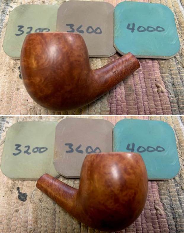 I polished the smooth briar with micromesh sanding pads – dry sanding with 1500-12000 grit pads and wiped it down with a damp cloth after each sanding pad. By the end of the last set of three the bowl took on a rich shine.