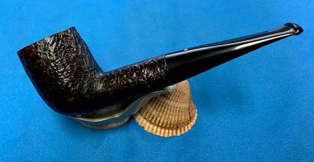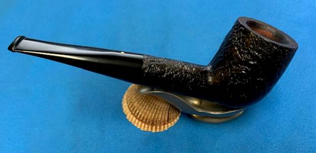 A deep craggy sandblast with a black stain finish (usually made using Algerian briar) – the color of the stain used has varied over the years. Although there is some doubt as to them being the first to sandblast pipes, Dunhill’s Shell pipes, and the sandblasting techniques developed to create them are considered one of Dunhill’s greatest and most lasting contributions to the art of pipe making.