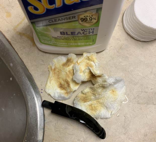 I set the bowl aside and sanded out the scratches and tooth marks on both sides of the stem with 220 grit sandpaper to blend it into the surface of the stem. I started the polishing with a 400 grit wet dry sandpaper.