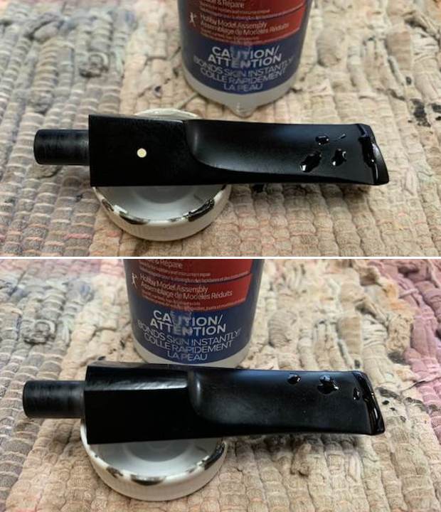 I set the bowl aside and turned to address the stem issues. I filled in the deep tooth marks in the vulcanite with clear CA glue. Once it cured I used a small file to flatten the repairs. I sanded them with 220 grit sandpaper to blend it into the surface of the stem. I started the polishing with a 400 grit wet dry sandpaper.