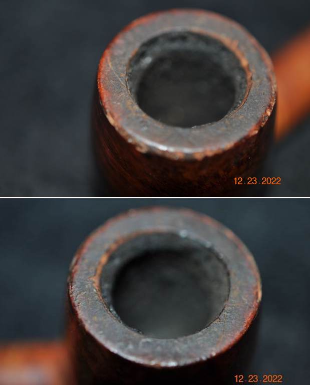 He took photos of the bowl and rim top to show their condition and of the stem to show the condition of both sides of the stem.