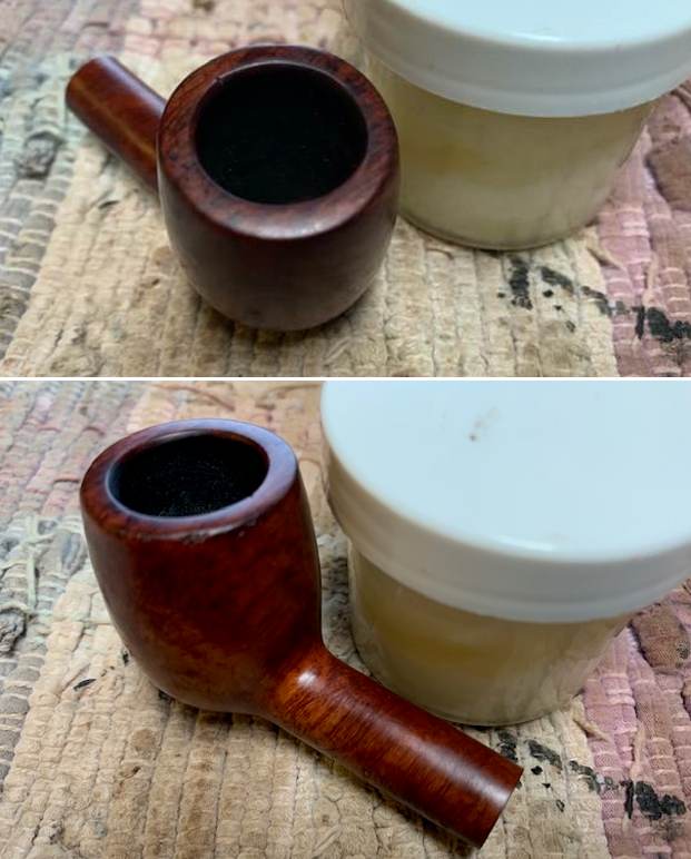 I rubbed the briar down with Before & After Restoration Balm. I worked it into the briar with my fingertips. The product works to clean, enliven and preserve the briar. I let it sit for 10 minutes then I buffed it with a cotton cloth to deepen the shine. The briar comes alive with the balm.