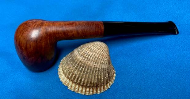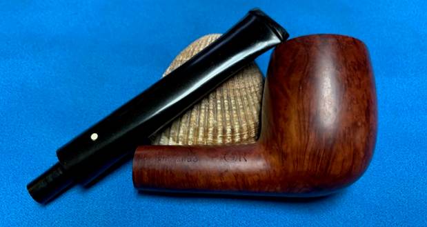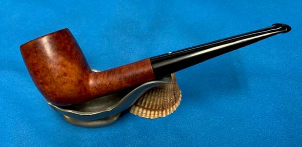 Dunhill introduced its third major finish, the Root finish, in 1931. Corsican mountain briar is characteristically beautifully grained and the Root was made exclusively from that briar into the 1960s. The pipe was finished with a light natural stain to allow the beauty of the graining to show through. Although always available with a traditional black vulcanite bit, the Root was introduced in either 1930 or more likely 1931 and fitted with a marble brown dark and light grained vulcanite bit that has since become known as the ‘bowling ball’ bit because of the similarity in appearance between the bit’s finish and that of some bowling balls of the time. With the war, however, the bowling ball bit was dropped from production. Through 1954 (and after) the Root pipe nomenclature (including shape numbers) was identical to that of the Bruyere except that instead of the “A” of the Bruyere, the Root was stamped with an “R”. In 1952 when the finish rather then LONDON was placed under DUNHILL, ROOT BRIAR rather then BRUYERE was used for the Root. Loring, J. C., The Dunhill Briar Pipe, The Patent Years and After (self-published, Chicago, 1998).