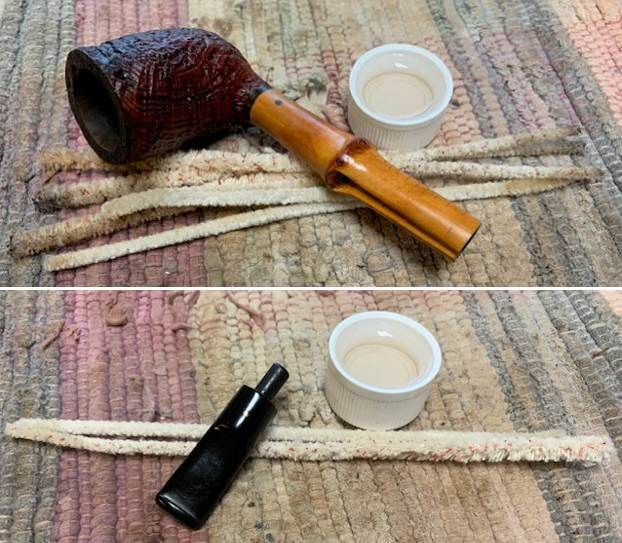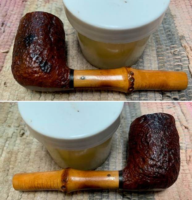 I ran some pipe cleaners through the shank and dried the bowl edges. I used a black stain pen to stain the inner edge of the bowl to blend it into the bowl and give definition to the rim top. I like the way this looks on a cleaned pipe.