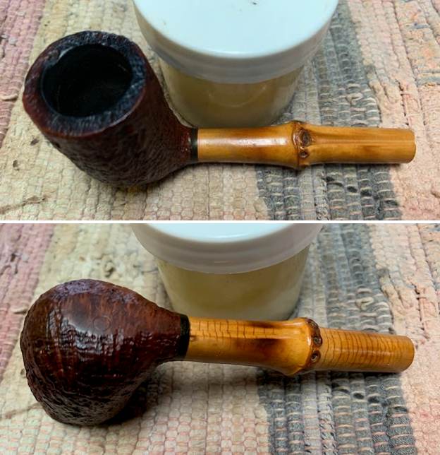 I worked some Before & After Restoration Balm into the briar with my finger tips and a horsehair shoe brush. The product is a great addition to the restoration work. It enlivens, enriches and protects the briar while giving it a deep glow. It is a product I use on every pipe I work on.