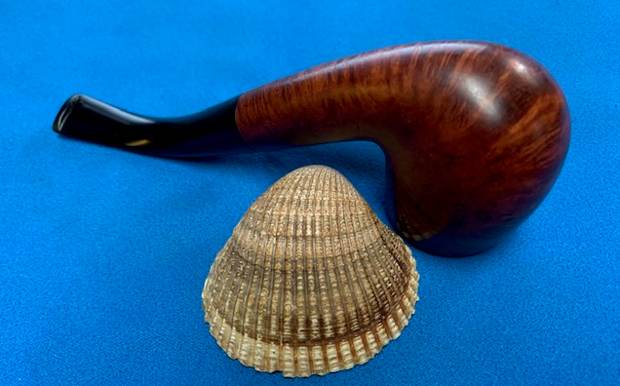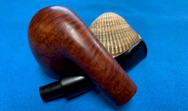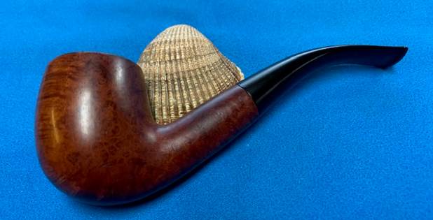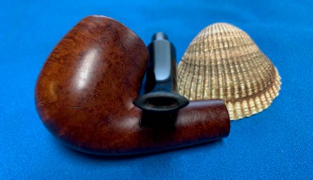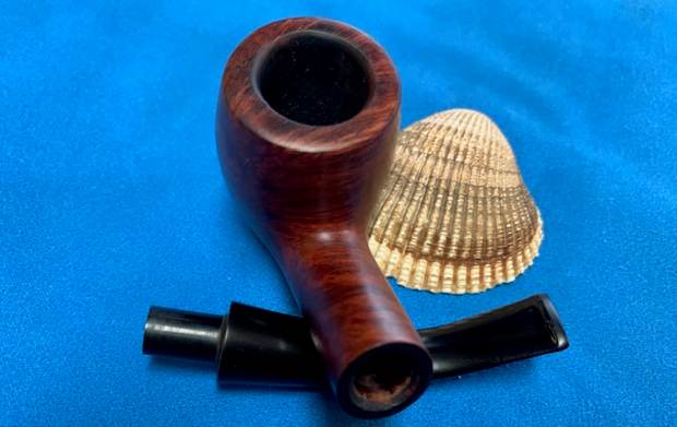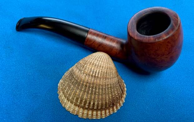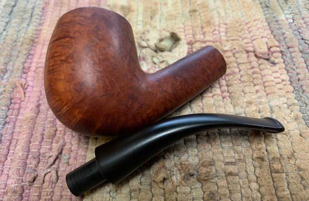 Dunhill introduced its third major finish, the Root finish, in 1931. Corsican mountain briar is characteristically beautifully grained and the Root was made exclusively from that briar into the 1960s. The pipe was finished with a light natural stain to allow the beauty of the graining to show through. Although always available with a traditional black vulcanite bit, the Root was introduced in either 1930 or more likely 1931 and fitted with a marble brown dark and light grained vulcanite bit that has since become known as the ‘bowling ball’ bit because of the similarity in appearance between the bit’s finish and that of some bowling balls of the time. With the war, however, the bowling ball bit was dropped from production. Through 1954 (and after) the Root pipe nomenclature (including shape numbers) was identical to that of the Bruyere except that instead of the “A” of the Bruyere, the Root was stamped with an “R”. In 1952 when the finish rather then LONDON was placed under DUNHILL, ROOT BRIAR rather then BRUYERE was used for the Root. Loring, J. C., The Dunhill Briar Pipe, The Patent Years and After (self-published, Chicago, 1998).
