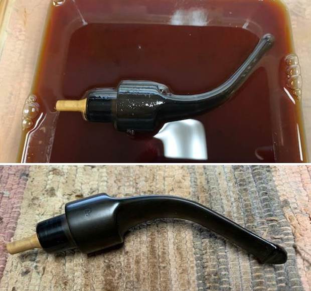 I soaked it again in Briarville’s Deoxidizer for several hours to further remove the deep oxidation. I removed it, rinsed it and dried it with a coarse cloth.
