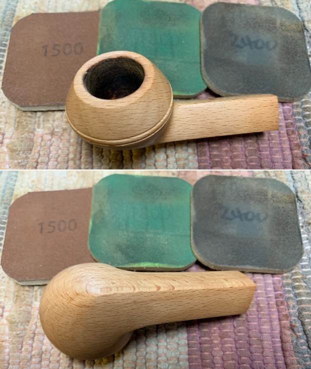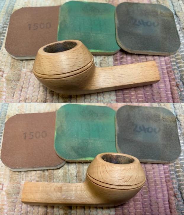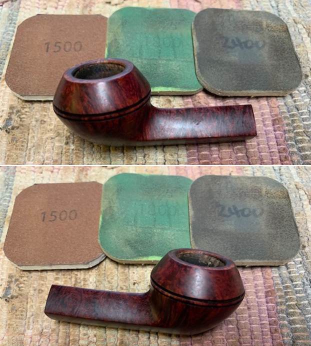 I started polishing the bowls of both pipes with micromesh sanding pads. I wet sanded it with 1500-12000 grit pads. I wiped the bowl down after each pad with a damp cloth. The bowl began to take on a rich shine and grain was beginning to stand out. I wet sanded with all of the pads and wiped the bowl down after each pad with a soft cloth.