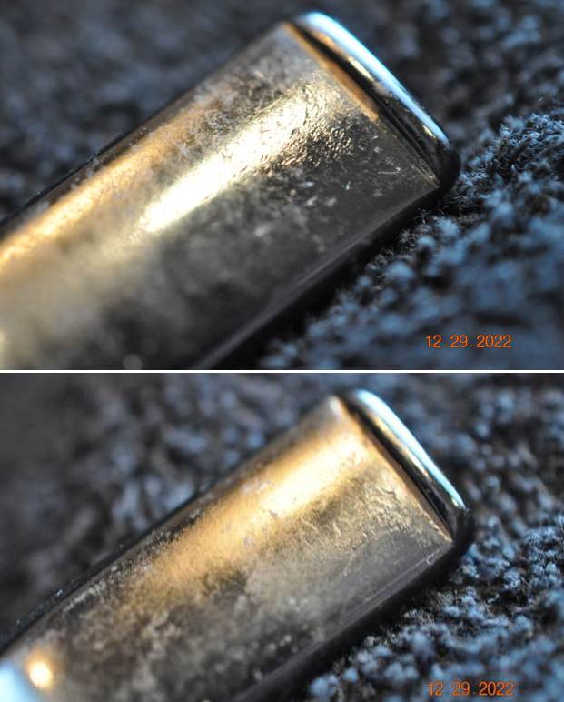 I took a photo of the stamping on the left underside of the diamond shank of both pipes to show that it was readable and undamaged by the cleanup work.