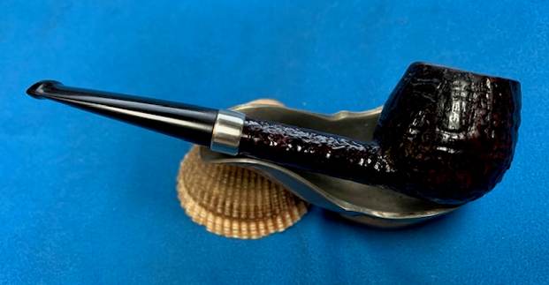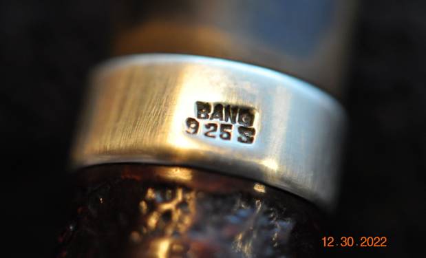 The next pipe was a surprise to Jeff and me when we bought it from the fellow in Copenhagen, Denmark on November 10, 2022. It is a petite sandblast apple with an oval shank and stem. The stem is vulcanite and the band Sterling Silver. The pipe is stamped S. Bang [over] Kobenhavn on a smooth oval on the underside of the shank.  That is over another smooth patch, a rectangle stamped with Handmade [over] In Denmark. The Sterling Silver band on the shank is stamped Bang [over] 925S. The bowl had a thick cake with some lava overflow on the rim top and inwardly beveled inner edge of the bowl. There were scratches and marks in the finish. The finish on the bowl was dirty but also seemed to have a very shiny coat on it. The silver band is tarnished and dirty. The oval, vulcanite taper stem is dirty, scratched and had tooth chatter and marks on the top and underside of the stem ahead of the button. Jeff took these  photos of the pipe before he started his cleanup work. He took photos of the rim and bowl to show the thick cake and lava coat covering the rim top. It really was filthy and a mess. It is hard to see if there was any damage to rim top and inner edge from the photos. He also took photos of the stem surfaces to show its overall condition when it arrived. The photos of the sides and heel of the bowls show beautiful blast around the bowl and shank sides. The rich brown stains highlights the grain and adds depth to the finish. It shows some promise. He also took photos of the stamping on the smooth panels on the underside of the shank and on the silver band. It took several photos to capture the stamp on the curve but they were clear and read as noted above. To help me understand the stamping a bit more I turned to Pipephil’s site and read what it said about S. Bang pipes (http://pipephil.eu/logos/en/logo-s1.html). I have included a screen capture of the section below as well as the side bar information below the capture. Sven Bang opened his tobacco and pipe shop in 1968 in Copenhagen. He was more a business man than a pipe carver and began to hire pipemakers. About half a dozen succeeded each other in his workshop during the 1970’s (Ivan Holst Nielsen, Jan Wideløv, Phil Vigen…). At least Per Hansen and Ulf Noltensmeier stayed and when Sven retired in 1983 they took over the company (in 1984) keeping its name.