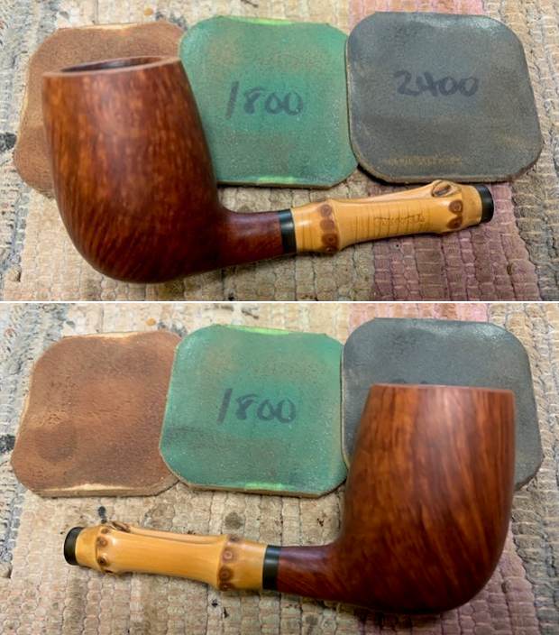 I set the bowl aside and turned my attention to the stem. I “painted” the stem with the flame of a Bic lighter to lift the tooth marks. The majority of them were lifted. I sanded out what remained with 220 grit sandpaper and then started the polishing with 600 grit wet dry sandpaper.