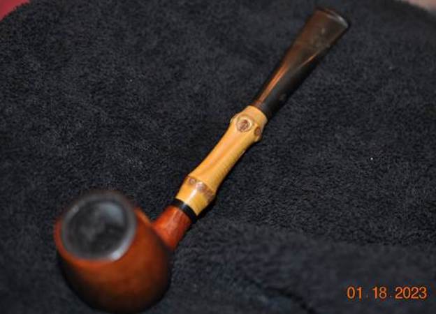 This Stanwell Bamboo Billiard with a vulcanite taper stem is a great looking pipe now that it has been restored. The beautiful finish really highlights the grain and the polished finish is stunning. I put the stem back on the bowl and carefully buffed the pipe with Blue Diamond on the buffing wheel. I gave the bowl and the stem multiple coats of carnauba wax on the buffing wheel and followed that by buffing the entire pipe with a clean buffing pad. I hand buffed the pipe with a microfiber cloth to deepen the shine. The finished Stanwell Bamboo Billiard fits nicely in the hand and feels great. Give the finished pipe a look in the photos below. The dimensions of the pipe are Length: 6 inches, Height: 1 ¾ inches, Outside diameter of the bowl: 1 inch, Chamber diameter: ¾ of an inch. The weight of the pipe is 34 grams / 1.20 ounces. I will be adding the pipe to the Danish Pipe Makers Section of the rebornpipes store. If you are interested in purchasing this pipe send me a message or an email. Thanks for reading this blog and my reflections on the pipe while I worked on it.