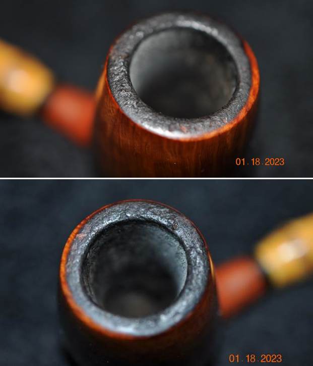 He took photos of the bowl and rim top to show what they looked like before his clean up. He also took some of the stem to show the condition of both sides.