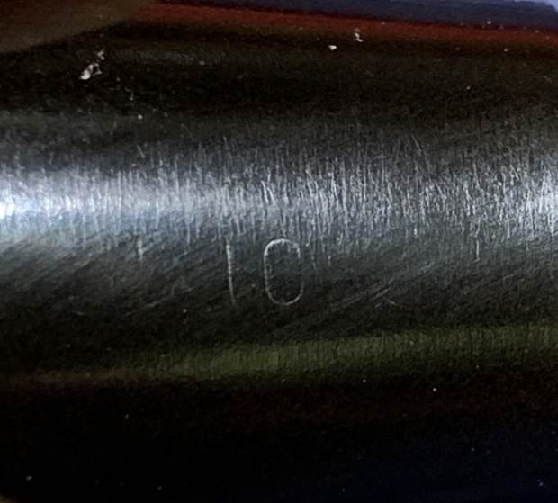 I built up the smaller dents on the stem and button with black cyanoacrylate adhesive and let them fully cure.