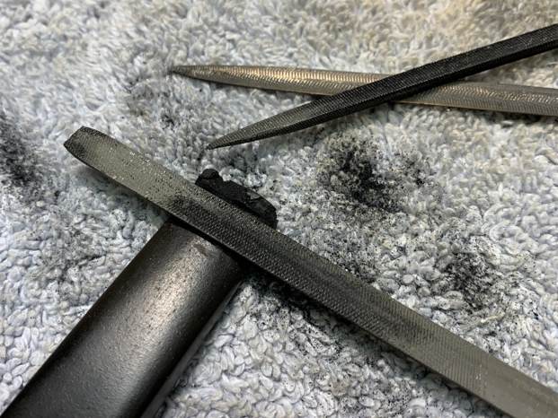 But just when I thought I was done the stummel — I wasn’t. I was reminded that there was that awful paper stuff on the tenon of the stem because it didn’t fit correctly, so I needed to rectify this too. I built up the bottom part of the mortise of the shank with CA glue and briar dust. After letting it cure, I sanded it down with my needle files, made it look good and, most importantly, ensured it fit well with the tenon.