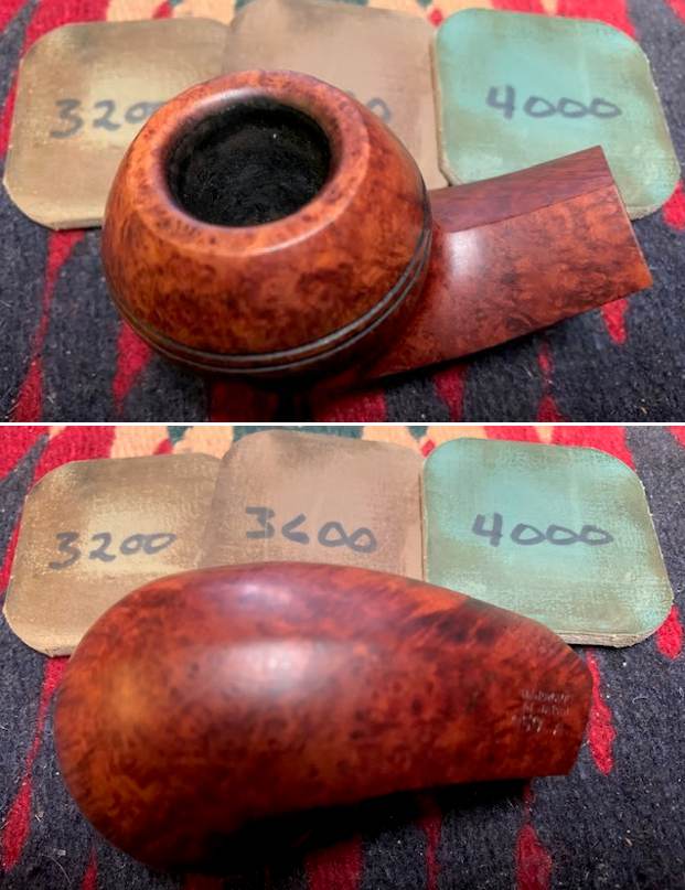 I started my work on the pipe by polishing the briar with micromesh sanding pads – dry sanding with 1500-12000 grit pads. I wiped it down after each sanding pad with a damp cloth to remove the sanding debris.