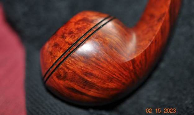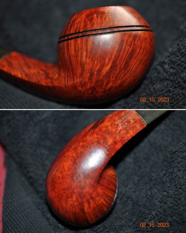 The photos of the sides and heel of the bowls show beautiful grain around the uniquely carved bowl and shank sides. The rich brown stains highlights the grain and adds depth to the finish. It shows some promise.