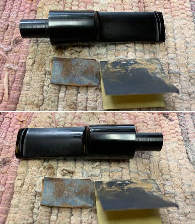 After finishing with the micromesh pads I rub the stem down with Before & After Fine and Extra Fine stem polish as it seems to really remove the fine scratches in the vulcanite. I rub the Fine Polish on the stem and wipe it off with a paper towel and then repeat the process with the Extra Fine Polish. I finished the polishing of the stem down with a final coat of Obsidian Oil and set the stem aside to let the oil absorb. This process gives the stem a shine and also a bit of protection from oxidizing quickly.