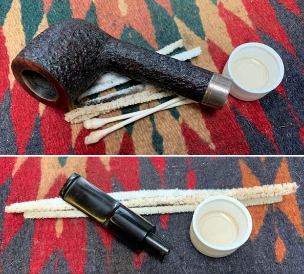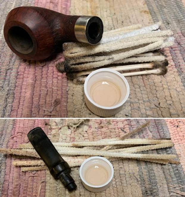 I cleaned out the internals with 99% isopropyl alcohol, pipe cleaners and cotton swabs. I worked over the shank and the airway in the stem. It took some work but once finished it was clean and smelled fresh.